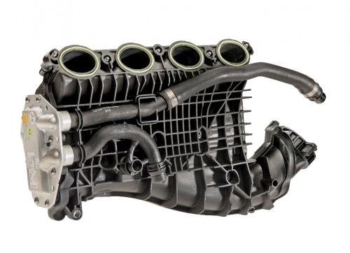 正是因為以上優(yōu)點,PA+GF廣泛應用于對力學性能要求較高的汽車零部件中,以下是PA+GF在汽車發(fā)動機進氣歧管、冷卻系統(tǒng)上的應用: